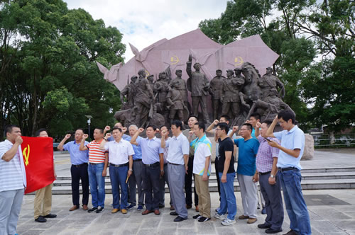 上海分公司黨總支組織開展“紅色之旅”教育 時間:2016-08-16 4072 8月12日,上海分公司黨總支組織部分黨員干部和入黨積極分子共18人,赴愛國主義教育基地福建古田開展“促兩學一做,走紅色之旅”教育活動,在“主席園”向毛主席像敬獻花籃,在“豐碑軍魂”雕像前面對黨旗重溫入黨誓詞,還仔細參觀古田會議地址和紀念館,回顧緬懷了老一輩無產階級革命家的不朽事跡。大家牢記“古田會議永放光芒”精神,紛紛表示:“不忘初心,繼續前行”。