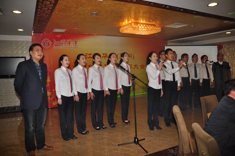 在隨后的迎春聯(lián)誼會(huì)上,一臺(tái)由惠州公司上下精心準(zhǔn)備、齊力打造、自編自演的精彩演出,表達(dá)出了廣大員工對(duì)2012年取得業(yè)績(jī)的自豪與喜悅,以及對(duì)公司美好未來(lái)的憧憬與向往。在演出中,由機(jī)具處員工莊曙演繹的男聲獨(dú)唱,以高亮的美聲唱法,讓在座嘉賓擊掌叫好;四位機(jī)關(guān)員工表演的三句半《華建style》,詼諧幽默談發(fā)展,回顧展望頌華建,讓在場(chǎng)觀眾掌聲不斷;蔡總和華總兩位領(lǐng)導(dǎo)帶頭獻(xiàn)歌,唱出了華建人對(duì)事業(yè)的激情與豪邁,對(duì)未來(lái)的堅(jiān)定與信仰。最后,由宗總、林總兩位總部領(lǐng)導(dǎo)和惠州公司12名男女員工組成的合唱團(tuán)獻(xiàn)上的一曲《華建之歌》更是將整個(gè)活動(dòng)推向了高潮,臺(tái)上的小合唱變成了在場(chǎng)華建人的大合唱,掌聲歡呼聲此起彼伏,年會(huì)在歡歌笑語(yǔ)中圓滿結(jié)束。新年思變,實(shí)干興業(yè),華建人立足惠州,一路高歌,奮勇前行。