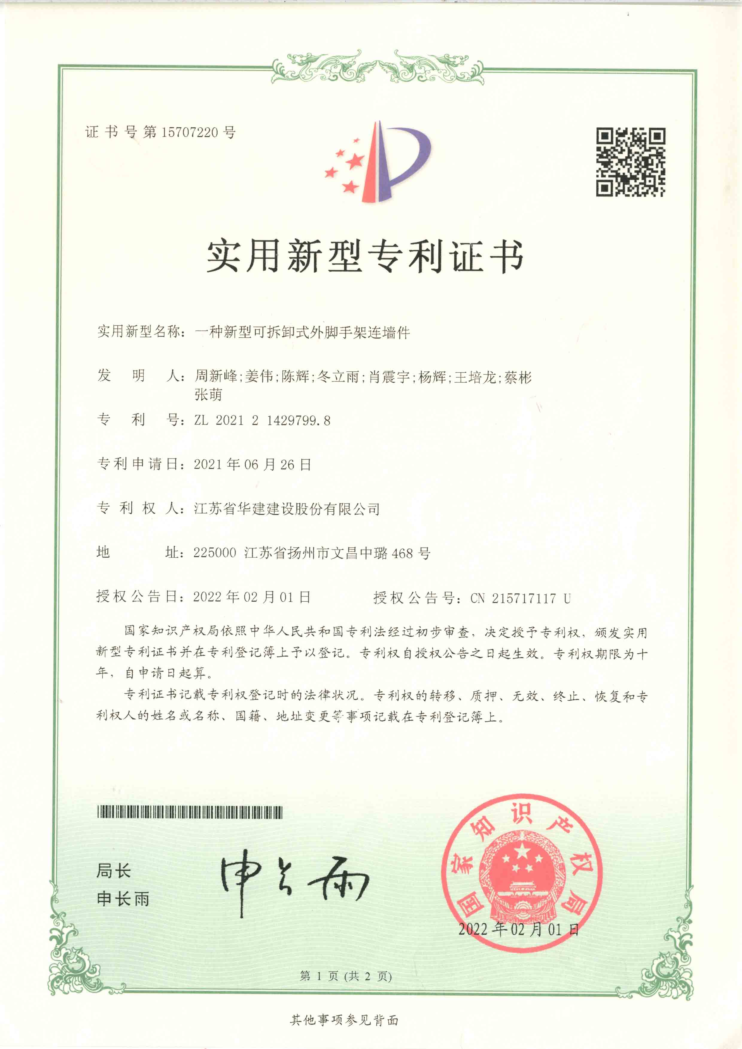 北京分公司2022年度已取得兩項實用新型專利證書 時間:2022-08-22 3656 日前,國家知識產權局頒發了實用新型專利證書,公司兩項專利取得實用新型專利證書,分別是:一種新型可拆卸式外腳手架連墻件、一種鋼筋混凝土現澆板板厚高精度控制裝置。