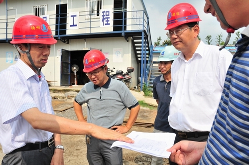 陳揚副市長視察建設大廈工地 時間:2011-08-12 4957 8月12日下午,揚州市政府副市長陳揚、市建設局局長楊正福一行前往江蘇華建代建的揚州建設大廈暨規劃展覽館、市民中心項目工地現場視察。揚州建工控股公司、江蘇華建董事長陸金龍陪同視察,并將工程施工進展情況向陳副市長作了簡要匯報。陳副市長對建設大廈總體施工進展表示滿意,并提出希望所有參建單位精心組織,科學管理,確保這一政府重點工程建設順利推進。公司領導程杰等一起陪同視察。