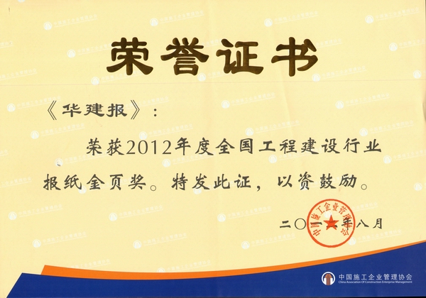 《華建報(bào)》連續(xù)三年榮獲“金頁(yè)獎(jiǎng)” 時(shí)間:2012-08-14 4171 8月9日,中施企協(xié)發(fā)布《關(guān)于表彰2012年度全國(guó)工程建設(shè)行業(yè)“金頁(yè)”報(bào)刊和“銀頁(yè)”報(bào)刊的決定》,公司主辦的《華建報(bào)》連續(xù)第三年被評(píng)為全國(guó)工程建設(shè)行業(yè) “金頁(yè)”報(bào)刊。《華建報(bào)》創(chuàng)刊五年來(lái),積極發(fā)揮窗口作用、平臺(tái)作用,以反映公司在技術(shù)創(chuàng)新、管理創(chuàng)新、體制創(chuàng)新和市場(chǎng)開(kāi)拓等方面的新動(dòng)態(tài)、新經(jīng)驗(yàn)和新成果為主要內(nèi)容,在宣傳企業(yè)形象、凝聚員工精神、塑造企業(yè)文化和促進(jìn)行業(yè)交流等方面起到了積極顯著作用,受到社會(huì)各界好評(píng)。