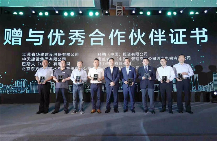 18日,2018朗詩綠色集團商務合作大會在南京召開。會議邀請了朗詩的優秀業務合作伙伴,圍繞“聚力同行 · 綠贏未來”這一主題展開探討,磋商拓展合作機遇。江蘇華建董事長王宏應邀出席大會,并受領朗詩“綠鏈攜手伙伴”證書。