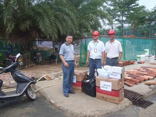 王宏總經理赴施工一線慰問 時間:2012-07-08 5686 6月15日上午,公司副總經理、海南分公司總經理王宏帶領施工安全設備處同志頂著炎炎烈日給三亞鹿回頭國賓館施工人員送去涼爽,對在一線施工的全體職工進行了慰問。送涼爽慰問活動是公司今年安全月活動一項重要內容,體現了公司領導對一線工人的關懷。
