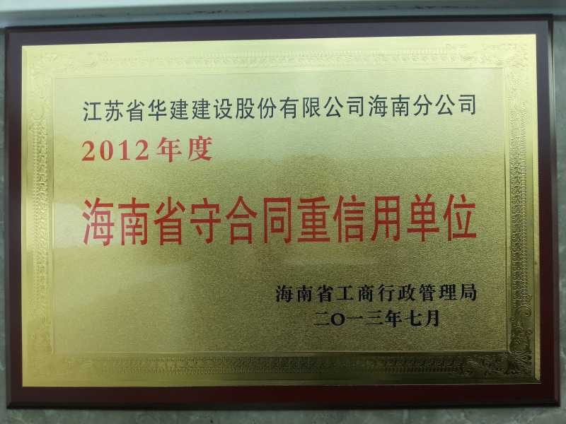 海南分公司喜獲海南省守合同重信用單位榮譽稱號 時間:2013-09-02 3615 8月底,海南分公司被海南省工商行政管理局表彰為2012年度“海南省守合同重信用單位”,這是公司連續21年獲此殊榮。多年來,海南公司堅持誠信為本,努力樹立品牌意識、形象意識,通過真誠服務贏得顧客的信賴、市場的拓展,在工程施工中信守合同,確保質量和工期,取得了卓有成效的業績。