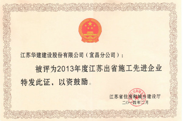 宜昌分公司榮獲2013年江蘇進(jìn)鄂施工先進(jìn)企業(yè)
