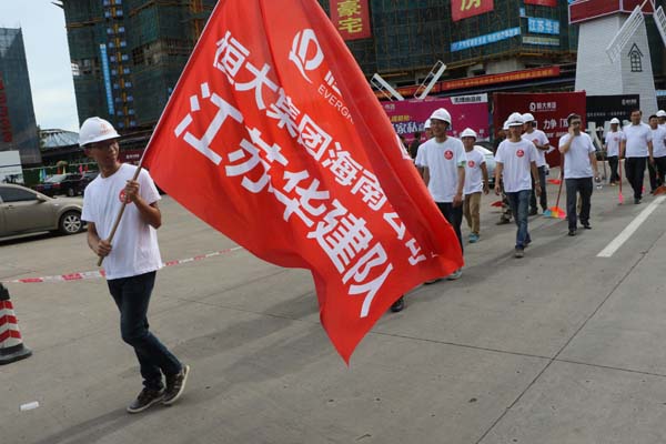 江蘇華建積極響應海口市“雙創”活動 時間:2015-09-01 2734 8月29日上午,海口市龍華區“雙創”啟動大會在我公司承建的恒大外灘中心項目現場召開,龍華區區委書記王東等領導出席啟動儀式,公司副總、海南分公司總經理王宏到會并做表態發言。 隨后,會場舉辦“我愛海口,力爭雙創”授旗儀式,并組織志愿者“自掃門前雪”,手拿掃把、簸箕等工具,將所屬衛生轄區打掃得干干凈凈,以實際行動來踐行“雙創”工作。