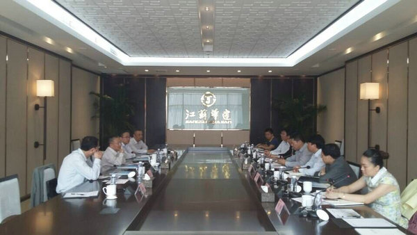 海建集團總裁吳亞春一行赴華建總部考察交流 時間:2015-10-19 4090 10月18日上午,海南省建設集團有限公司總裁吳亞春一行赴公司總部考察交流,公司常務副總程杰、海南公司副總高家馴及相關部門負責人參加接待交流。交流會上,程總介紹了公司的發展歷程和基本情況,雙方就蘇瓊兩地建筑施工企業發展、用人機制、分配機制和管理理念等方面分享各自的經驗與不足,并就尋求深度合作交流了意向,整個交流會氣氛活躍,雙方都感到受益匪淺。