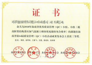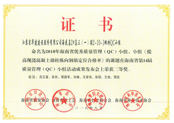 海南公司五項QC成果獲得省級表彰 時間:2018-09-03 3089 日前,海南省質量協(xié)會公布了2018年海南省“優(yōu)秀質量管理(QC)小組”活動成果評比結果,海南分公司共有5項成果受到表彰。其中,海花島2#島三(一)期2-10-1地塊QC小組榮獲二等獎,博鰲三江口濱水旅游商業(yè)區(qū)(二期)項目部QC小組、三亞婦幼保健院整體搬遷(新址)建設項目QC小組、恒大海上帝景QC小組、華盛中央公園國際公寓QC小組榮獲三等獎。 (技術質量處)