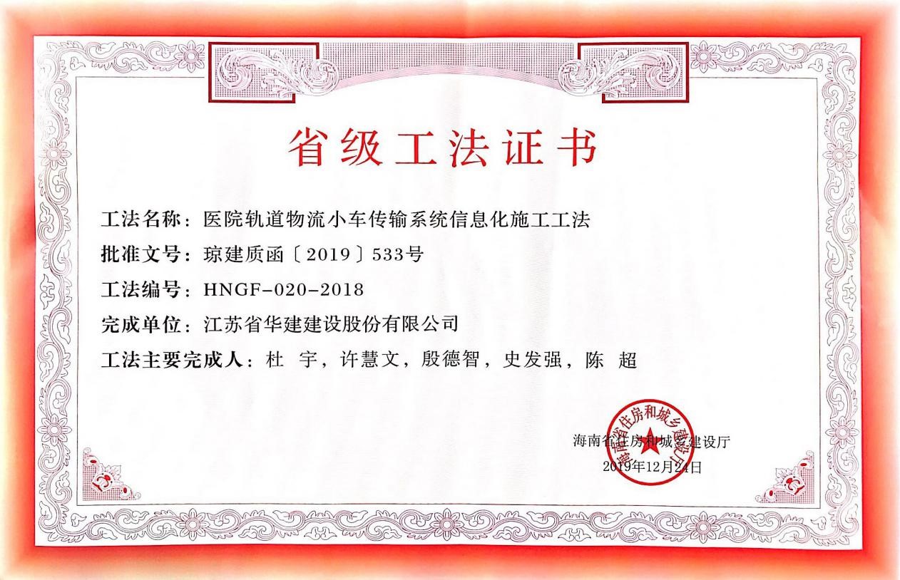 海南分公司新增1項(xiàng)省省級(jí)工法 時(shí)間:2020-01-10 3592 2019年12月24日,海南省住房和城鄉(xiāng)建設(shè)廳公布了2018年度海南省省級(jí)工法評(píng)審結(jié)果,我司《醫(yī)院軌道物流小車傳輸系統(tǒng)信息化施工工法》成功入選。