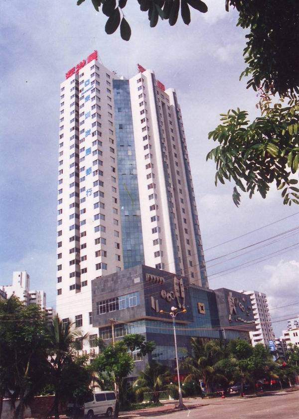 該工程共28層,其中地下2層,建筑總高度105.05m,建筑面積31890m2,框支剪力墻結構體系。工程地下二層為人防,地下一層為停車場,一至四層為辦公寫字間,四至五層設轉換層,兼作設備通風層,五至二十六層為住宅。大廈設備齊全,有中央空調、3臺進口電梯、進口衛生潔具、共用電視天線、消防控制中心等。外裝飾,一至四層為進口藍寶石花崗巖,五至二十六層為白色條形面磚及鋁合金窗。內裝飾,五至二十六層樓地面為拼木地板,客廳房間墻面及頂棚為多彩噴涂,衛生間、廚房間為釉面磚墻及防滑地面磚,采用輕鋼龍骨石膏板吊頂。