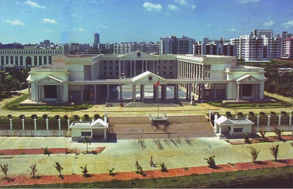 ??谑兄屑?jí)人民法院審判辦公樓位于??谑薪鹩盥?號(hào),1995年4月竣工,1996年6月被評(píng)為海南省優(yōu)質(zhì)工程,并榮獲海南省優(yōu)秀建筑二等獎(jiǎng),1997年12月榮獲魯班獎(jiǎng)。