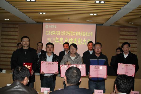珠海區(qū)域公司召開2012年度總結(jié)表彰大會(huì) 時(shí)間:2013-01-12 5641 2013年1月12日,珠海區(qū)域公司在珠海公司會(huì)議室召開了2012年度總結(jié)表彰大會(huì),各工程處主任、直管項(xiàng)目經(jīng)理、先進(jìn)個(gè)人代表、公司機(jī)關(guān)全體人員共66人參加了會(huì)議。會(huì)議由公司副總經(jīng)理盧達(dá)同志主持,江蘇華建副總經(jīng)理、珠海分公司總經(jīng)理繆國樞同志作了工作報(bào)告。繆總的工作報(bào)告從七個(gè)方面對(duì)珠海區(qū)域公司2012年度的工作做了認(rèn)真的總結(jié),并對(duì)2013年的工作提出了打算。分公司副總經(jīng)理嚴(yán)正濤同志在會(huì)上對(duì)區(qū)域公司2013年生產(chǎn)經(jīng)營工作計(jì)劃作了解讀,對(duì)2013年的主要經(jīng)營指標(biāo)進(jìn)行了分解,明確了各工程處(直管項(xiàng)目部)的具體指標(biāo)任務(wù)。會(huì)議表彰了徐平等23名先進(jìn)個(gè)人和“陽江陽光馬德里項(xiàng)目部”等3個(gè)先進(jìn)單位,分公司副總經(jīng)理、總工程師周學(xué)軍同志宣讀了表彰決定。大會(huì)結(jié)束后繆國樞總經(jīng)理代表區(qū)域公司與2012年下半年新開工的5個(gè)項(xiàng)目部簽訂了修改后的內(nèi)部承包協(xié)議書,修改后的內(nèi)部承包協(xié)議加大了創(chuàng)建品牌的獎(jiǎng)勵(lì)力度,激勵(lì)新開項(xiàng)目爭(zhēng)創(chuàng)優(yōu)質(zhì)工程,為提升企業(yè)形象,鑄造企業(yè)金字招牌多做貢獻(xiàn)。