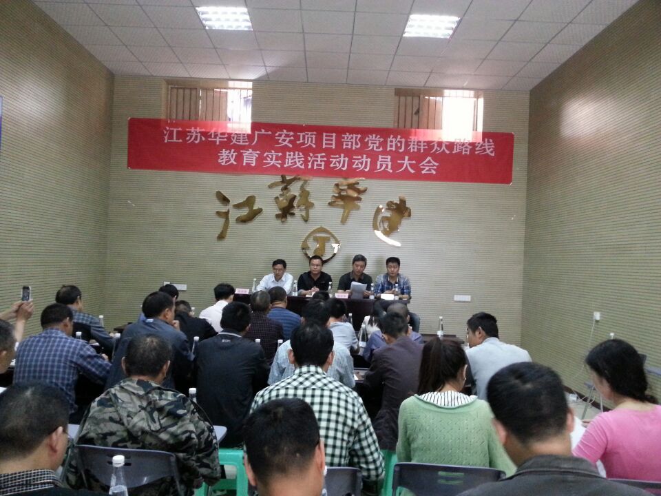 廣安官盛新區建設項目部黨小組召開黨的群眾路線教育實踐活動動員大會 時間:2014-04-17 4884 2014年4月16日,江蘇華建四川廣安官盛新區基礎設施暨美好家園建設項目部黨小組召開黨的群眾路線教育實踐活動動員大會。項目部所有黨員及各重要崗位管理人員共40余人參加會議。會議由珠海區域公司副總經理嚴正濤主持。珠海區域公司副總經理、總工程師周學軍在會上傳達了上級黨委關于深入開展黨的群眾路線教育實踐活動的實施方案和總的要求。珠海區域公司辦公室相關人員向與會者詳細介紹了本次活動所著力反對的“四風”的主要表現形式。官盛鎮黨委副書記馬江林參加會議,并對黨小組相關活動的開展提出了具體要求和指導意見。