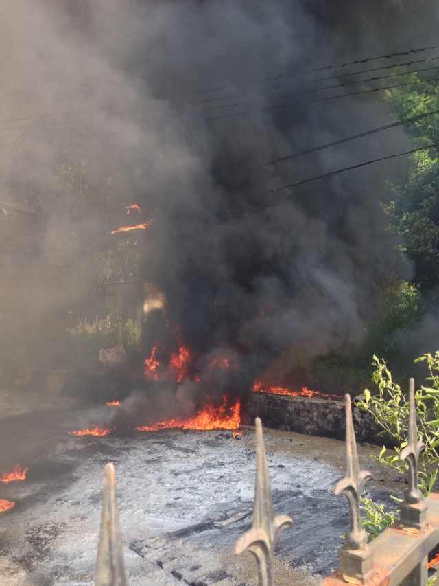 鄰居意外起火 項目部奮力撲救 時間:2014-07-30 4295 7月30日上午,珠海公司山海一品項目隔壁居民樓樓下堆放的裝修材料,因不明原因燃起大火,濃煙滾滾,火勢迅速蔓延,材料正上方的線纜部分起火。到項目現場檢查工作的公司副總經理盧達,立即組織項目部人員用工地現場滅火器等消防器材,在消防人員趕來之前撲滅大火,避免了重大財產損失。