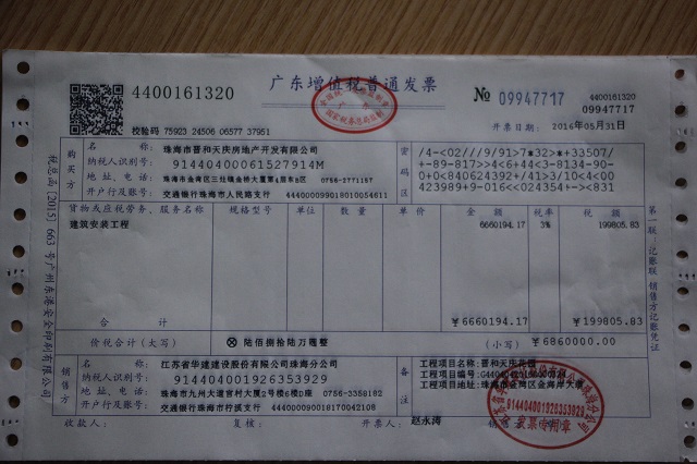 珠海區域公司第一張增值稅發票成功開具 時間:2016-06-01 2849 建筑行業“營改增”自5月1日起正式實施,公司領導高度重視“營改增”工作,先后完成了稅控設備軟硬件更新、數次的“營改增”知識培訓及交流會,并在主管國稅局完成了有關一般納稅人認定、增值稅發票額度調整、公司老項目備案等工作。 5月31日,財務處成功開具了第一張增值稅普通發票,此票為公司第五項目部承擔施工任務的晉和天慶花園總承包工程使用,走出了公司“營改增”工作的堅實一步。