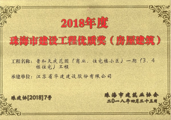 3月1日,珠海市建筑業(yè)協(xié)會第四屆五次會員大會在珠海德瀚大酒店隆重召開,會上對2018年度珠海市建筑業(yè)先進單位、先進個人、優(yōu)質(zhì)工程進行了表彰。珠海區(qū)域公司獲評2018年度珠海市建筑業(yè)優(yōu)秀企業(yè),公司總經(jīng)理呂方達榮獲2018年度珠海市建筑業(yè)優(yōu)秀企業(yè)家稱號,左兆金被表彰為優(yōu)秀項目經(jīng)理。此外,公司3個項目分獲表彰,晉和天慶花園一期工程獲評2018年度珠海市建設工程優(yōu)質(zhì)獎(房屋建筑),橫琴隆義廣場、華策國際大廈被評為2018年度珠海市建設工程優(yōu)質(zhì)結(jié)構(gòu)獎。