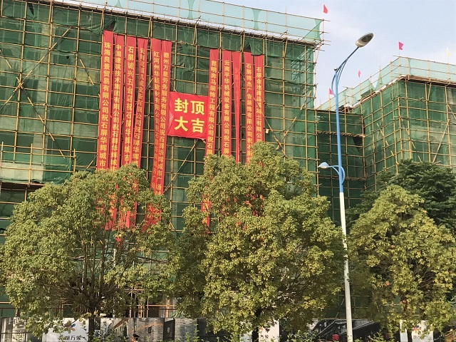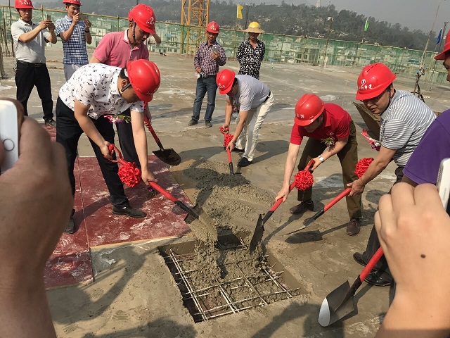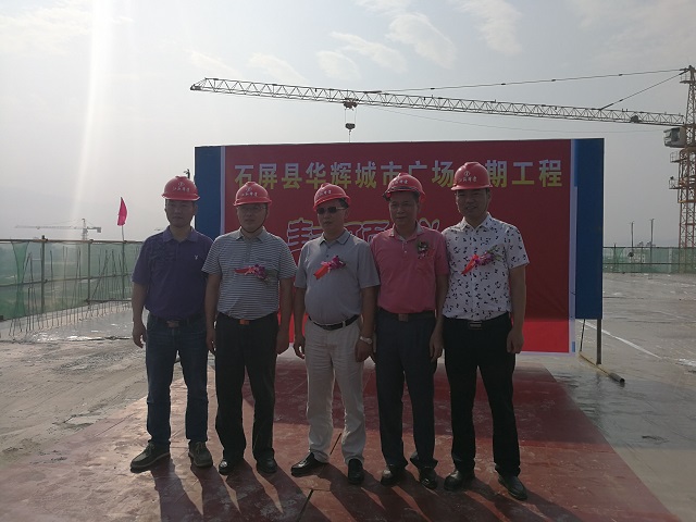 公司首個在滇項目——華輝城市廣場順利封頂 時間:2017-05-07 3049 5月6日,公司首個在滇項目——云南石屏縣華輝城市廣場舉行主體結構封頂儀式。重慶分公司總經理嚴正濤出席儀式。 華輝城市廣場項目位于石屏縣新城核心中央地段,為該縣城的“CBD”。整個建筑面積為18萬平方米,地上面積為13.4萬㎡,地下4.5萬平方米。其中一期工程建筑面積為93843.78平方米,承包范圍土建、水電、消防、門窗、室外園林綠化等工程(即除電梯工程外),一期主要以商業開發為主,項目結構為框架,以3層結構為主,預計2017年6月竣工。