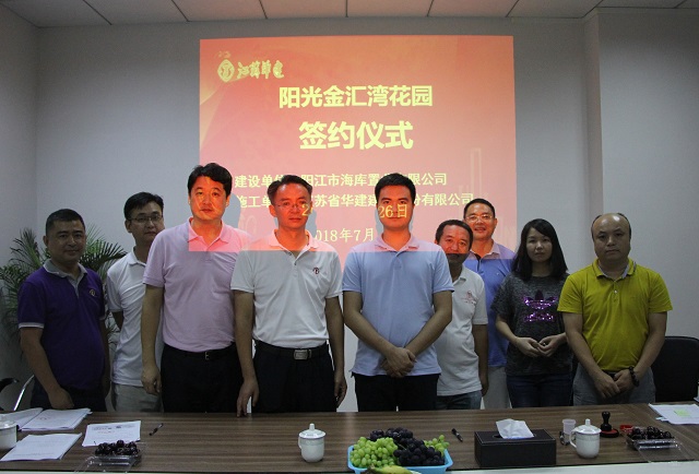 公司新簽1項目,造價1.66億元 時間:2018-07-27 4481 7月26日下午,陽光金匯灣花園施工總承包合同在陽江市海庫置業有限公司會議室成功簽約,項目開發商陽江市海庫置業有限公司總經理黃立衡,珠海區域公司總經理呂方達出席簽約儀式。 該項目位于陽江市江城區,總建筑面積約10.5萬平米,由13棟商住樓組成,造價約1.66億元,由第一項目部施工。