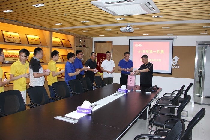 公司積極參與“5.19”慈善一日捐活動 時間:2019-05-18 2217 5月17日,珠海公司黨委積極響應總部黨委的號召,組織機關全體員工積極參與揚州市“5.19”慈善一日捐活動。大家紛紛慷慨解囊、奉獻愛心,共籌得善款5700元,以實際行動引領樂善好施、向上向善的文明風尚,為慈善扶貧事業貢獻綿薄之力。
