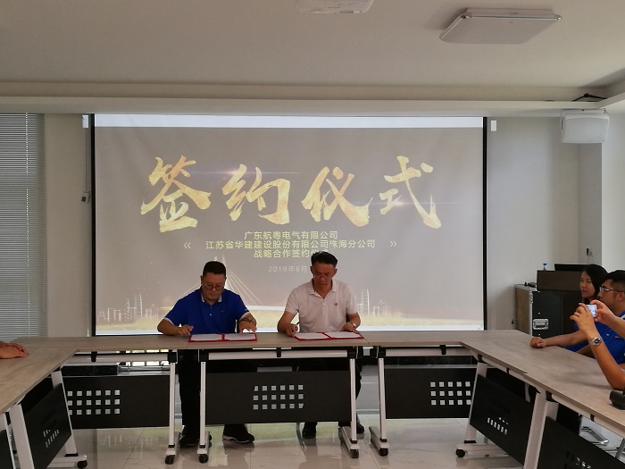 2019年6月15日,江蘇華建珠海分公司總經(jīng)理呂方達與廣東航粵電氣有限公司董事長楊建豐分別代表雙方簽訂《戰(zhàn)略合作框架協(xié)議》。