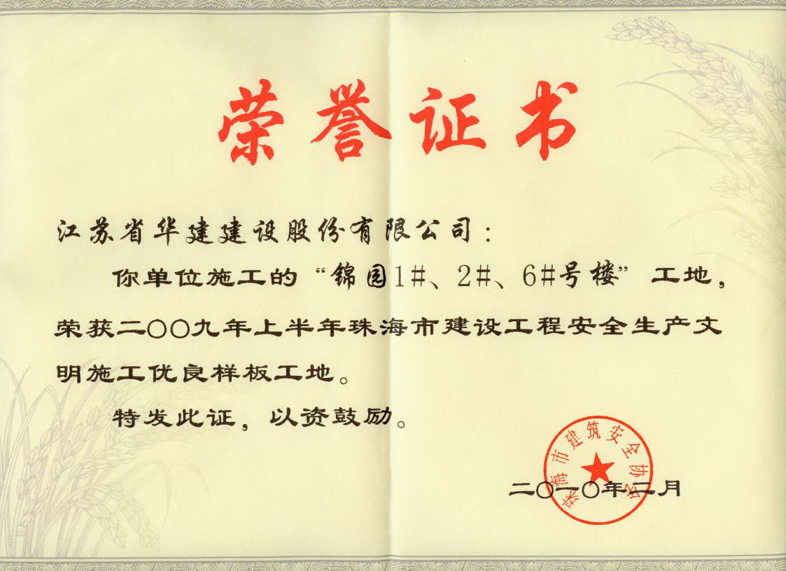 2010年錦園1#、2#、6#樓安全文明市樣板