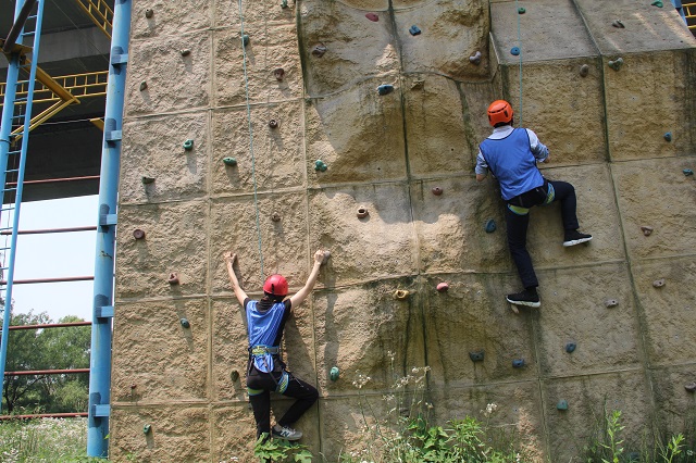 面對(duì)技巧性和冒險(xiǎn)性較強(qiáng)的“巖上芭蕾”,大家紛紛挑戰(zhàn)自我,勇敢攀登,體驗(yàn)了一把“蜘蛛俠”飛檐走壁的瀟灑;在挑戰(zhàn)五分鐘項(xiàng)目中,所有隊(duì)員群策群力,以“教科書”般的團(tuán)隊(duì)協(xié)作能力與默契精神,用最短時(shí)間高效地完成了四個(gè)小項(xiàng)目的考核挑戰(zhàn),被培訓(xùn)老師點(diǎn)贊為“卓越團(tuán)隊(duì)”;動(dòng)力繩圈項(xiàng)目讓大家感受到了團(tuán)隊(duì)的力量,聲聲吶喊中迸發(fā)出的堅(jiān)定和不服輸?shù)木耥憦卦诿⑼Π蔚乃闪种小C课恍』锇槔鄄⒖鞓分靡懈矣谄床木窈蜆O強(qiáng)的團(tuán)隊(duì)榮譽(yù)感,才能完美地贏得每一次挑戰(zhàn)。
